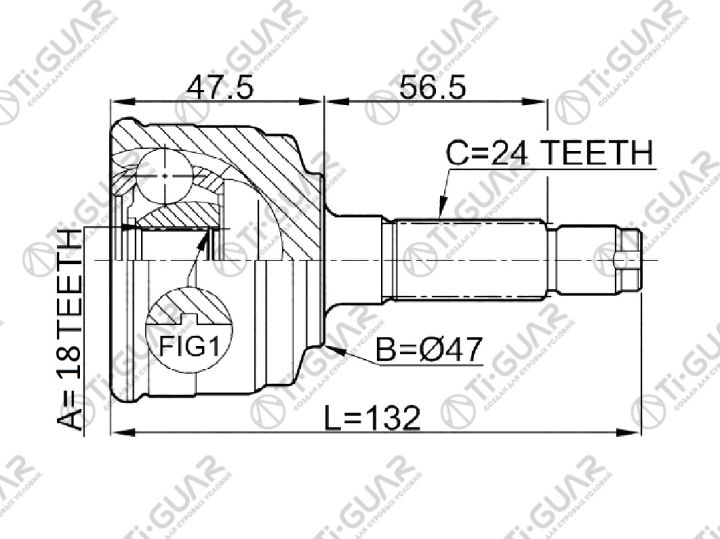 ШРУС наружный /передний левый /правый /TI-GUAR для Daihatsu Opti L800S/L810S Move L900S/L902S/L910S Hijet S210P Cargo S210V; 18*47*24; TG-2824; (DA-024) DA024 4341097206 4341097502
