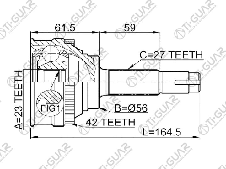 ШРУС наружный /передний левый /правый /TI-GUAR для Nissan Avenir W10 1990-1993 Primera P11 1990-1997 Bluebird U12; 23*56*27; TG-7419Z42; (TG-7419 NI019A42 0210019A42) NI019 NI19